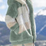 It is completely lined with a double fur layer and is handcrafted from a silky, opulent faux fur quality in a recycled polyester blend. It has a front zipper, a lined hood with drawstring accents, and elasticated waist and cuffs to retain warmth.