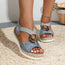 Sturdy Wedge Heel: The sandals' sturdy wedge heel shape gives them height without sacrificing support or stability.